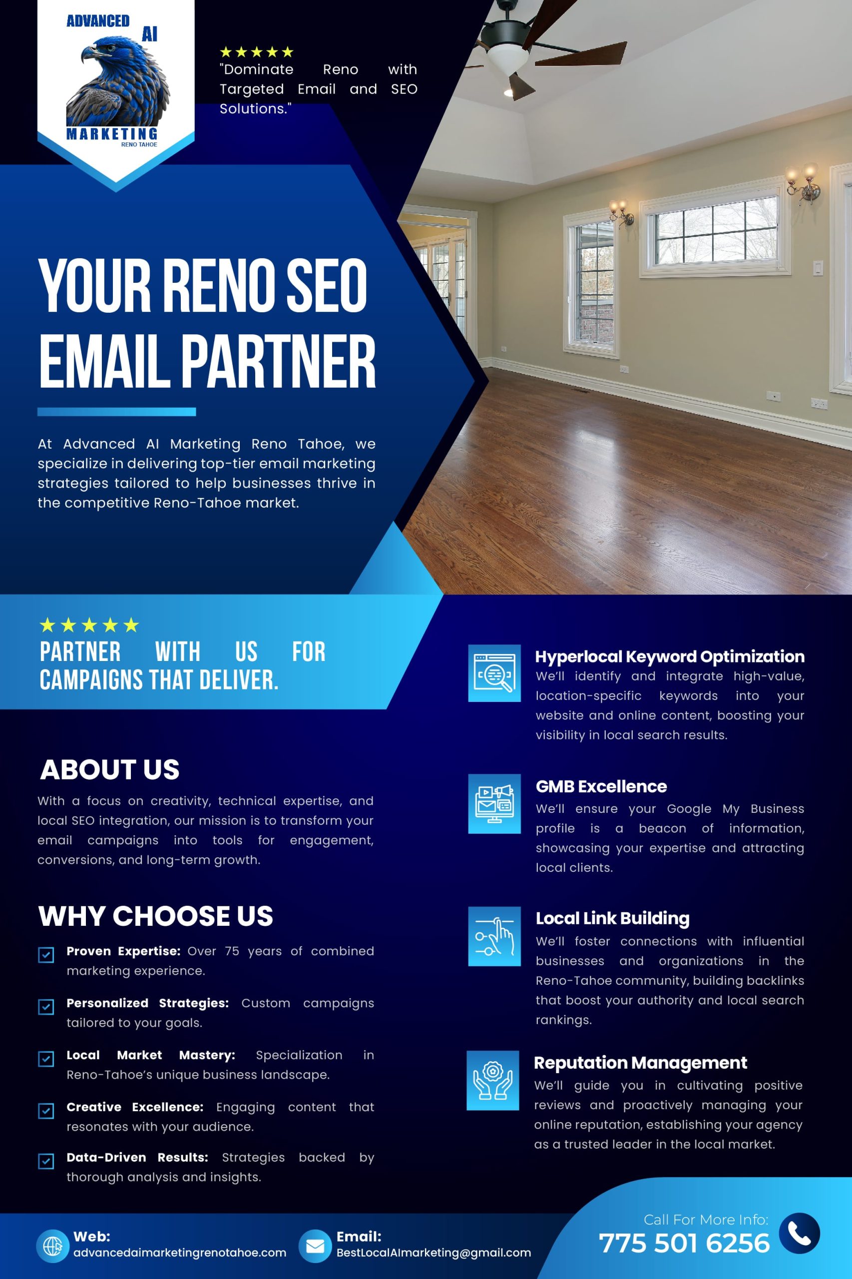 In the competitive Reno-Tahoe advertising landscape, standing out is essential. At Advanced AI Marketing, we leverage targeted Google Local SEO strategies to ensure your email advertising agency is front and center when potential clients are searching for your services. 🏆