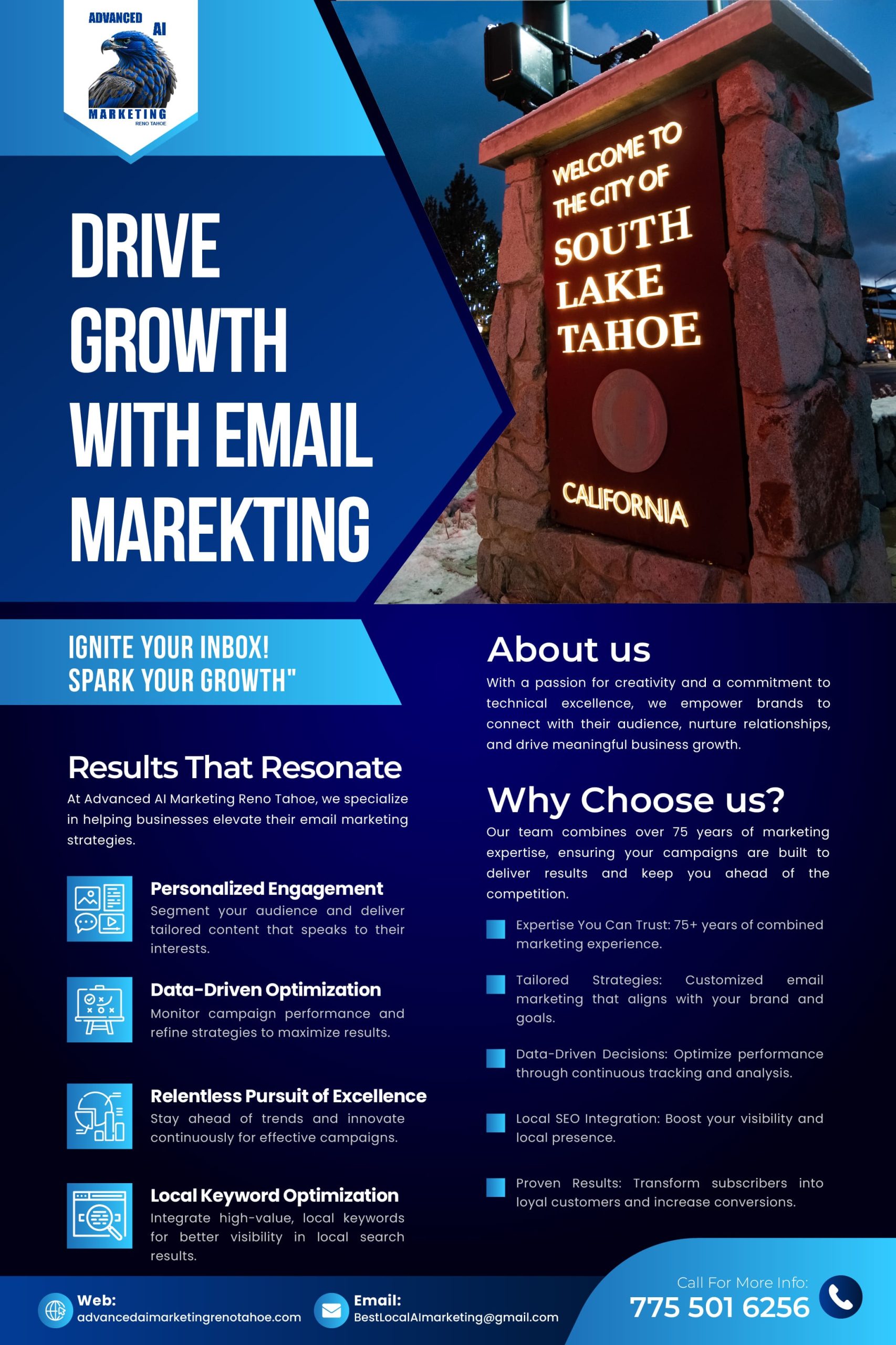 Whether you’re in Reno, Sparks, or the stunning Lake Tahoe area, Advanced AI Marketing Reno Tahoe is ready to help you unleash the full potential of email marketing. Contact us today and let’s transform your email campaigns into powerful drivers of business growth.