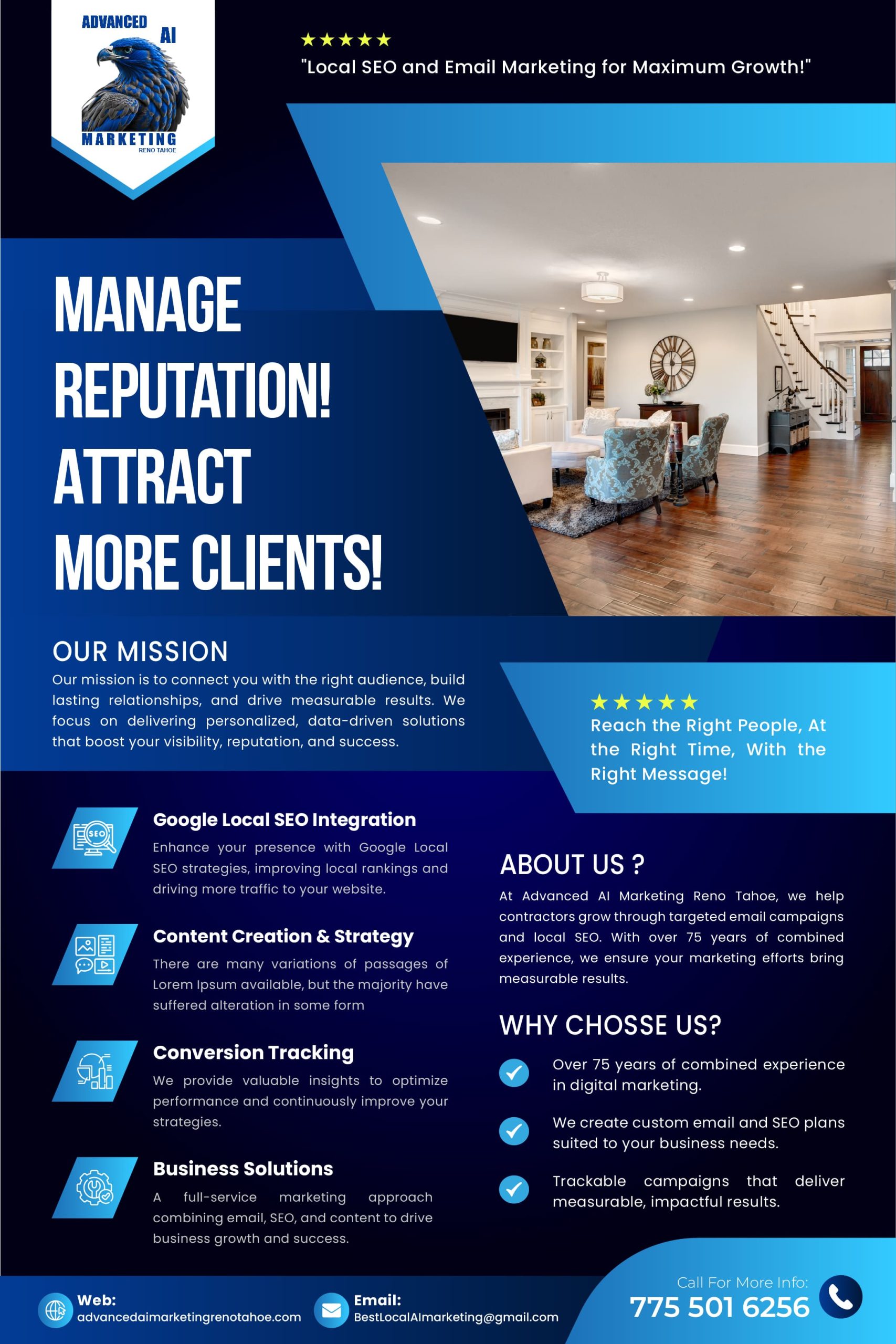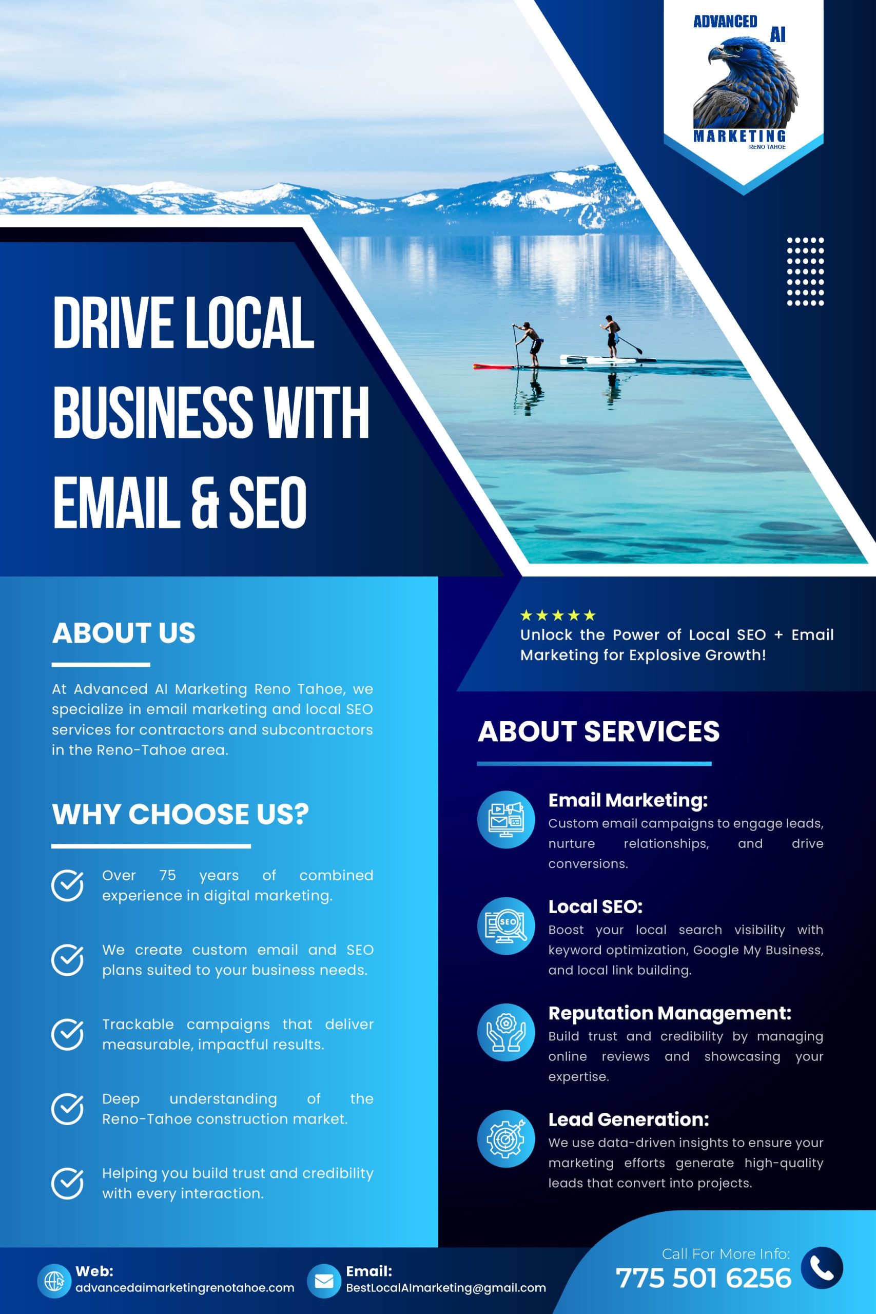 Contact Advanced AI Marketing Reno Tahoe today and let’s unlock the full potential of email marketing and local SEO for your construction business. We’re here to help you achieve your goals and build a thriving company in the vibrant Reno-Tahoe community. 🚀